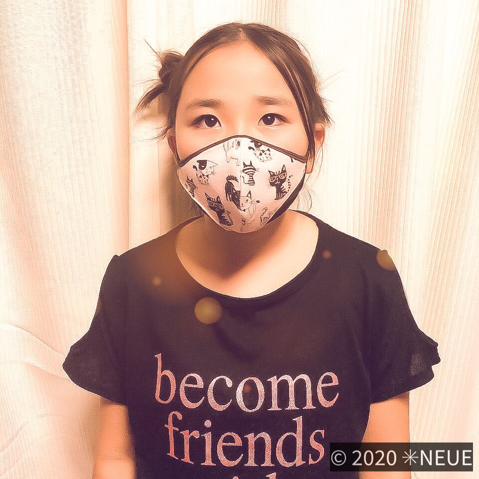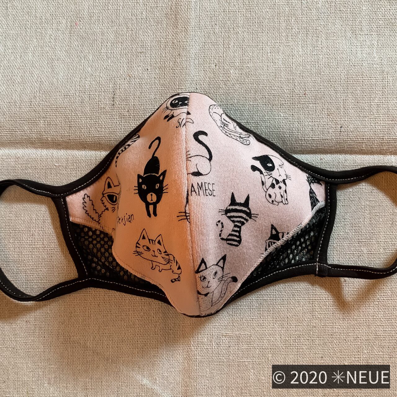 布マスク 猫柄 ピンク 【Aster NEUE】 フレーム 一体型 立体 マスク 日本製